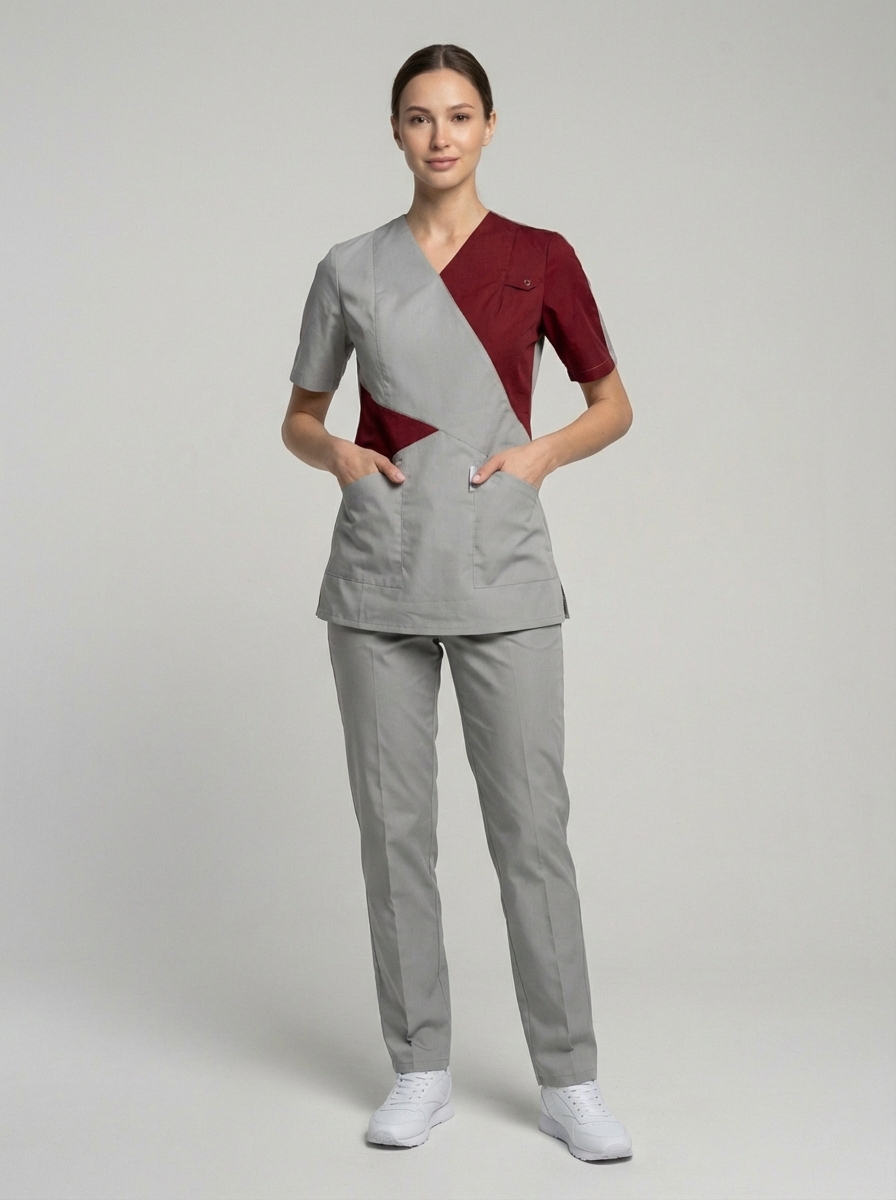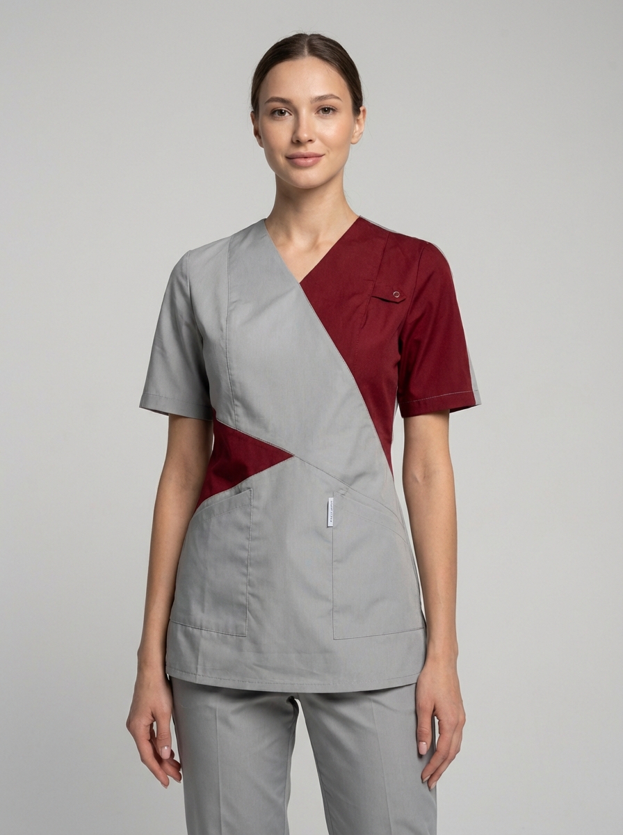 Рукава короткие. Застежка на притачные планки с кнопками.