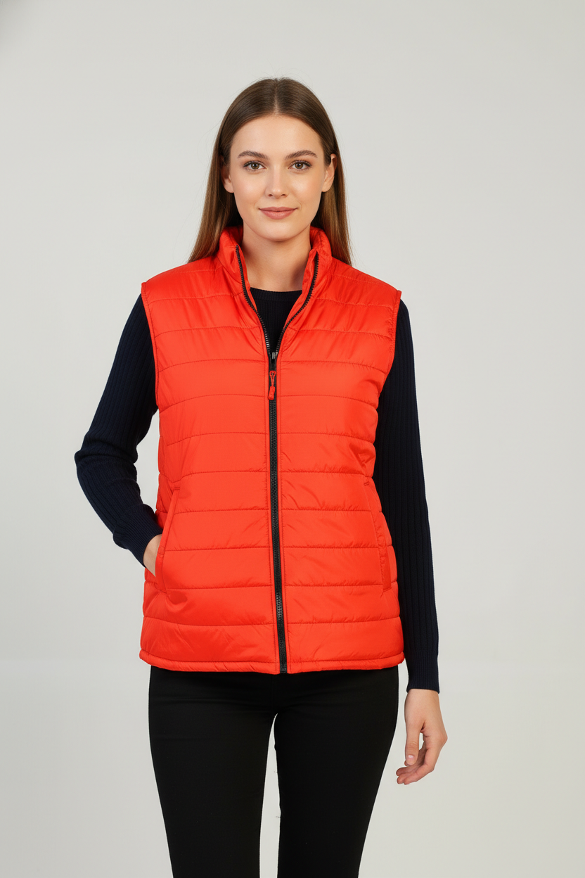 Жилетна подкладке выстеган с утеплителем центральная застежка на двухзамковую молнию. прорезные карманы. воротник-стойка.